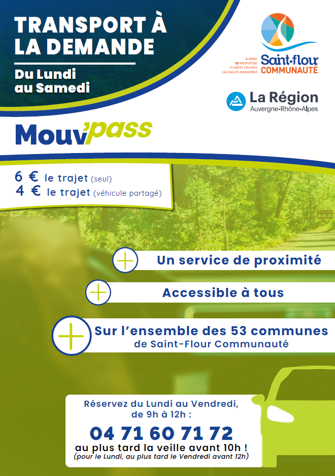 - Navette hivernale Saint-Flour - station de Prat-de-Bouc : expérimentée 4 semaines en février 2024, elle a été bien accueillie même si le manque de neige a limité la fréquentation. Expérimentation reconduite du 9 février au 9 mars 2025. Coût : environ 20 000 € par période, financé par la Région.